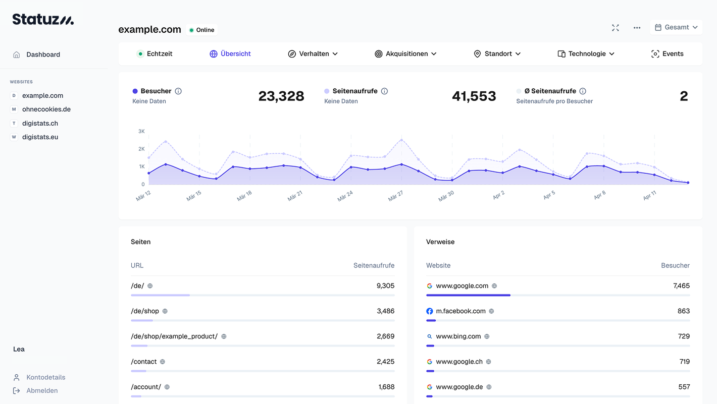 Unsere intuitive und leicht verständliche Statistik zeigt dir ganz einfach, wie deine Besucher und Kunden deine Website nutzen.